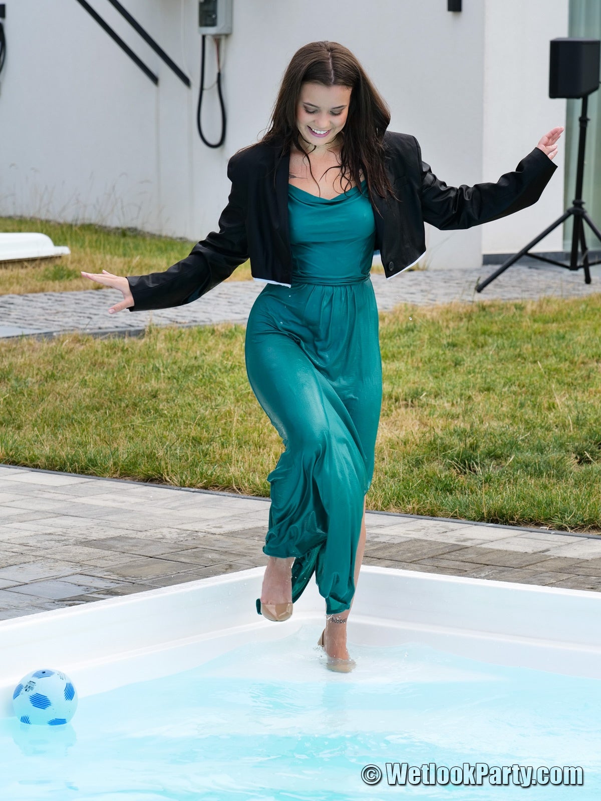 I met Daniella in a rainy day, and she was on her way home after a family event, as she told me, and I thought if I could stop her, why not give it a try to invite her for a fully clothed bath. And as you can see, I had luck that day, and she got soaked. Enjoy watching her first wetlook experience! 😉